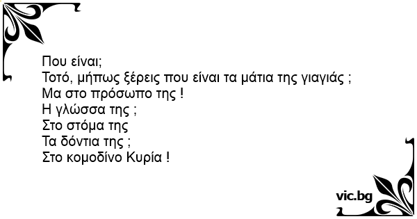 Τοτό, μήπως ξέρεις που είναι τα μάτια της γιαγιάς ;