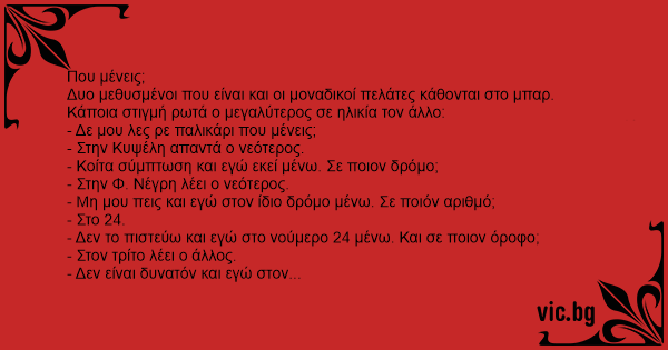 Κάποια στιγμή ρωτά ο μεγαλύτερος σε ηλικία τον άλλο: