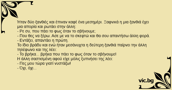 Η μια ξανθιά σβήνει το φως και η άλλη απαντά: