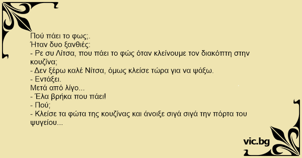 - Ρε συ Λίτσα, που πάει το φώς όταν κλείνουμε τον διακόπτη στην κουζίνα;