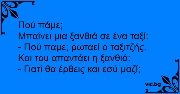 - Πού παμε; ρωταεί ο ταξιτζής.