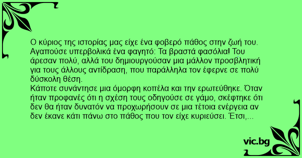 Ο κύριος της ιστορίας μας είχε ένα φοβερό πάθος στην ζωή του. Αγαπούσε υπερβολικά ένα φαγητό: Τα βραστά φασόλια! Του άρεσαν πολύ, αλλά του δημιουργούσαν μια μάλλον προσβλητική για τους άλλους αντίδραση, που παράλληλα τον έφερνε σε πολύ δύσκολη θέση.