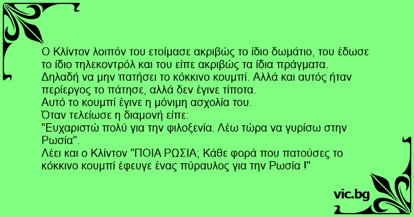 Λέει και ο Κλίντον "ΠΟΙΑ ΡΩΣΙΑ; Κάθε φορά που πατούσες το κόκκινο κουμπί έφευγε ένας πύραυλος για την Ρωσία !"