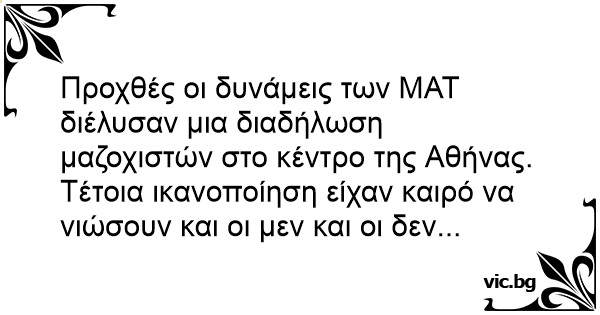 Προχθές οι δυνάμεις των ΜΑΤ διέλυσαν μια διαδήλωση μαζοχιστών στο κέντρο της Αθήνας. Τέτοια ικανοποίηση είχαν καιρό να νιώσουν και οι μεν και οι δεν...