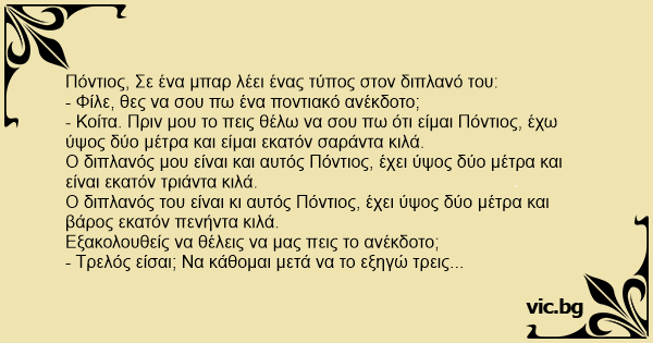 - Φίλε, θες να σου πω ένα ποντιακό ανέκδοτο;