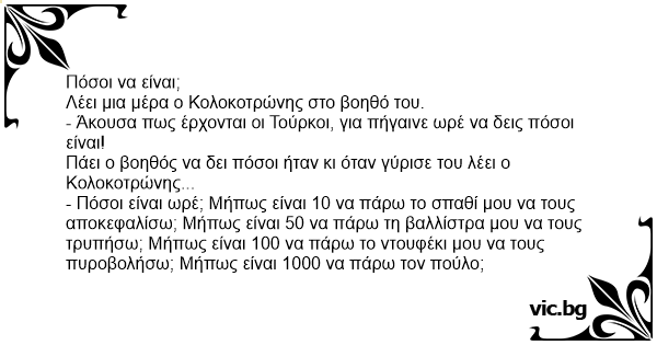 Πάει ο βοηθός να δει πόσοι ήταν κι όταν γύρισε του λέει ο Kολοκοτρώνης...