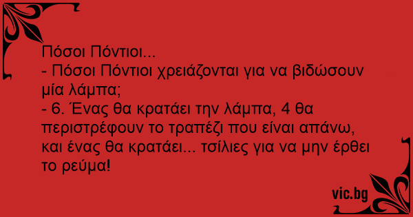 - Πόσοι Πόντιοι χρειάζονται για να βιδώσουν μία λάμπα;