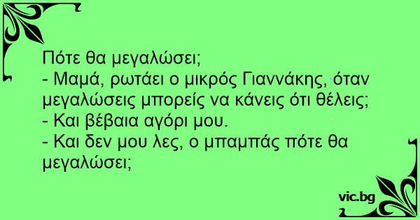 - Και δεν μου λες, ο μπαμπάς πότε θα μεγαλώσει;