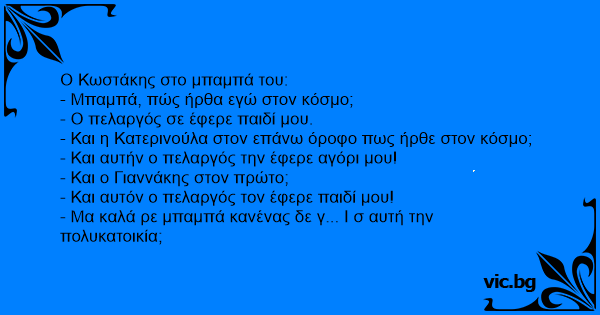 - Και η Κατερινούλα στον επάνω όροφο πως ήρθε στον κόσμο;