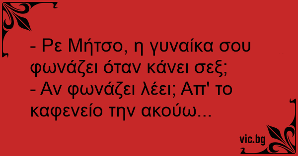 - Ρε Μήτσο, η γυναίκα σου φωνάζει όταν κάνει σεξ;