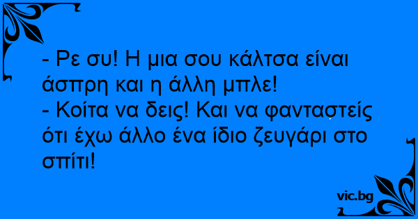- Ρε συ! Η μια σου κάλτσα είναι άσπρη και η άλλη μπλε!