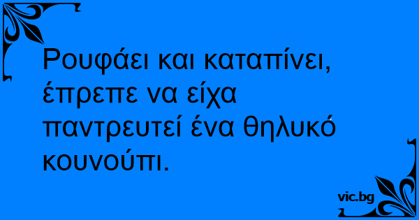 Ρουφάει και καταπίνει, έπρεπε να είχα παντρευτεί ένα θηλυκό κουνούπι.