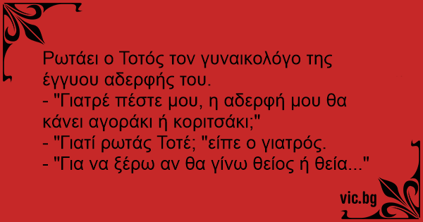 - "Γιατρέ πέστε μου, η αδερφή μου θα κάνει αγοράκι ή κοριτσάκι;"