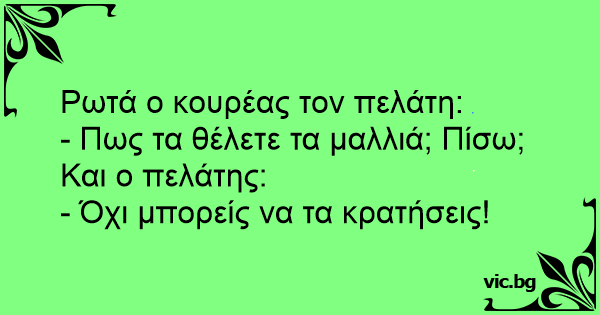 - Πως τα θέλετε τα μαλλιά; Πίσω;