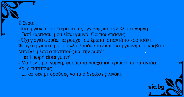 Φεύγει η γιαγιά, μα το άλλο βράδυ ήταν και αυτή γυμνή στο κρεβάτι. Μπαίνει μέσα ο παππούς και την ρωτά: