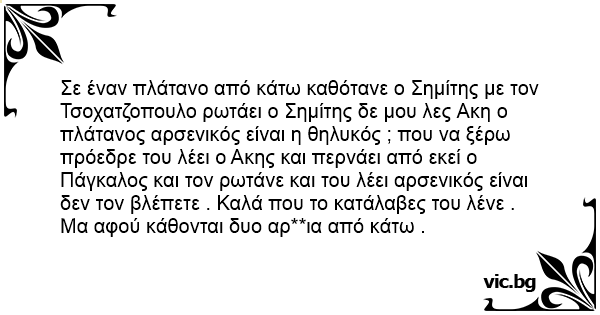 Σε έναν πλάτανο από κάτω καθότανε ο Σημίτης με τον Τσοχατζοπουλο ρωτάει ο Σημίτης δε μου λες Aκη ο πλάτανος αρσενικός είναι η θηλυκός ; που να ξέρω πρόεδρε του λέει ο Aκης και περνάει από εκεί ο Πάγκαλος και τον ρωτάνε και του λέει αρσενικός είναι δεν τον βλέπετε . Καλά που το κατάλαβες του λένε . Μα αφού κάθονται δυο αρ**ια από κάτω .