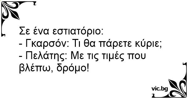 - Πελάτης: Με τις τιμές που βλέπω, δρόμο!