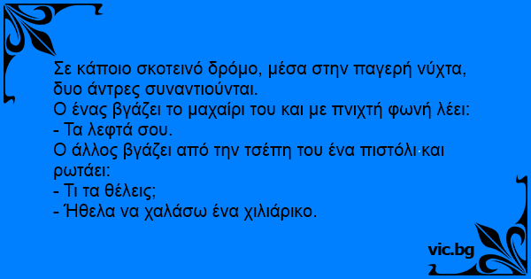 Ο άλλος βγάζει από την τσέπη του ένα πιστόλι και ρωτάει:
