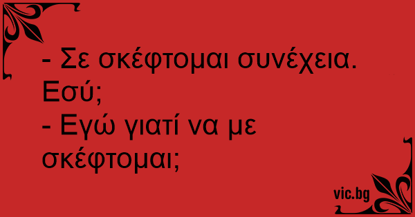 - Σε σκέφτομαι συνέχεια. Εσύ; - Εγώ γιατί να με σκέφτομαι;
