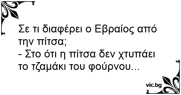 Τι διαφορά εχει μια πιτσα απο ενα Εβραιο...! Η πιτσα στον φουρνο δεν ουρλιαζει!