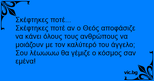Σκέφτηκες ποτέ αν ο Θεός αποφάσιζε να κάνει όλους τους ανθρώπους να μοιάζουν με τον καλύτερό του άγγελο;