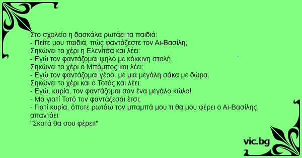 - Γιατί κυρία, όποτε ρωτάω τον μπαμπά μου τι θα μου φέρει ο Αι-Βασίλης απαντάει: