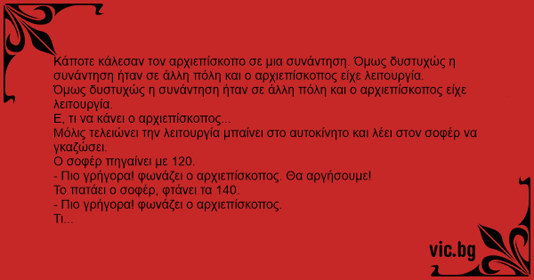 - Κοίτα αρχηγέ, προσωπικά εγώ δεν τον ξέρω, αλλά ο σοφέρ του είναι ο αρχιεπίσκοπος!