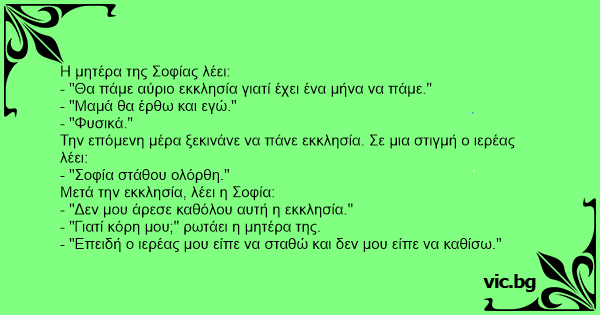 - "Θα πάμε αύριο εκκλησία γιατί έχει ένα μήνα να πάμε."