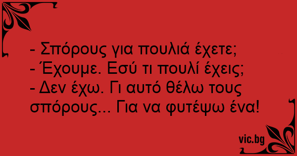 - Έχουμε. Εσύ τι πουλί έχεις;