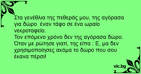 Στα γενέθλια της πεθεράς μου, της αγόρασα για δώρο έναν τάφο σε ένα ωραίο νεκροταφείο.