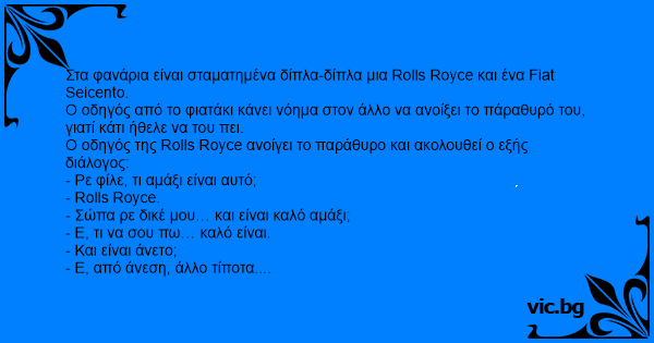 Ο οδηγός της Rolls Royce ανοίγει το παράθυρο και ακολουθεί ο εξής διάλογος: