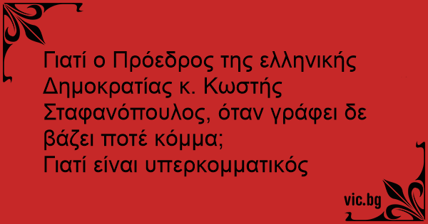 Γιατί ο Πρόεδρος της ελληνικής Δημοκρατίας κ. Κωστής Σταφανόπουλος, όταν γράφει δε βάζει ποτέ κόμμα;