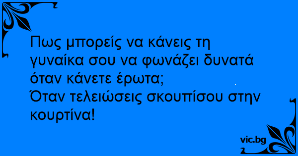 Hvordan få kona til å skrike to ganger i løpet av en hyrdestund? - Først tar du henne knallhardt bakfra. Deretter bruker du gardinene til å tørke med...