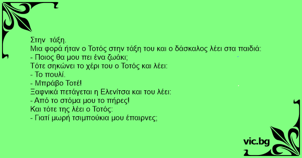 Μια φορά ήταν ο Τοτός στην τάξη του και ο δάσκαλος λέει στα παιδιά: