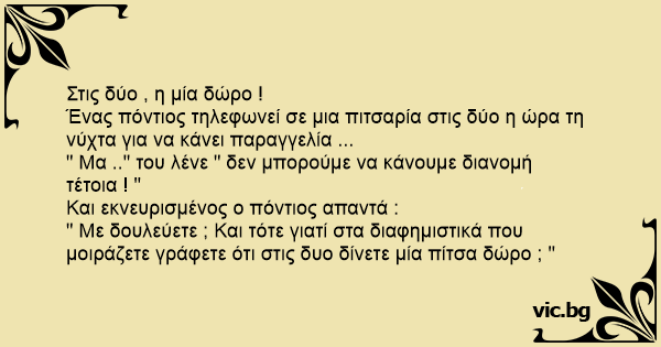 " Με δουλεύετε ; Και τότε γιατί στα διαφημιστικά που μοιράζετε γράφετε ότι στις δυο δίνετε μία πίτσα δώρο ; "