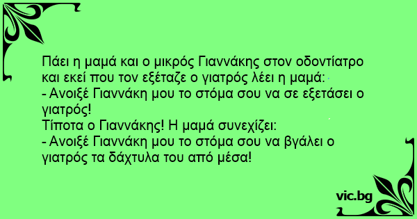 - Aνοιξέ Γιαννάκη μου το στόμα σου να σε εξετάσει ο γιατρός!