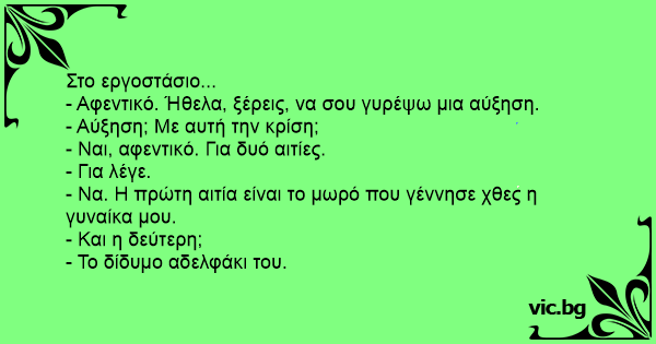 - Να. Η πρώτη αιτία είναι το μωρό που γέννησε χθες η γυναίκα μου.