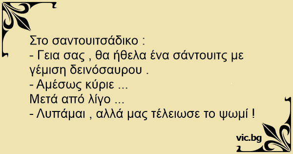 - Γεια σας , θα ήθελα ένα σάντουιτς με γέμιση δεινόσαυρου .
