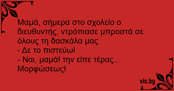 Μαμά, σήμερα στο σχολείο ο διευθυντής, ντρόπιασε μπροστά σε όλους τη δασκάλα μας.