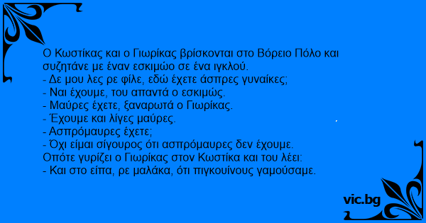 - Ναι έχουμε, του απαντά ο εσκιμώς.