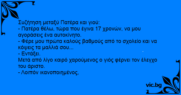 - Πατέρα θέλω, τώρα που έγινα 17 χρονών, να μου αγοράσεις ένα αυτοκίνητο.