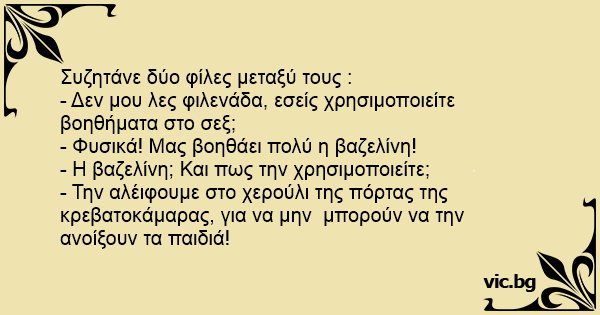 - Δεν μου λες φιλενάδα, εσείς χρησιμοποιείτε βοηθήματα στο σεξ;