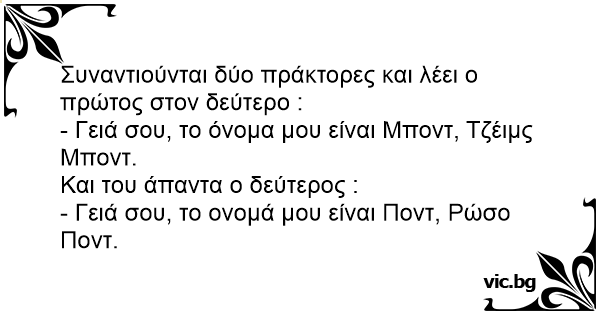 - Γειά σου, το όνομα μου είναι Μποντ, Τζέιμς Μποντ.
