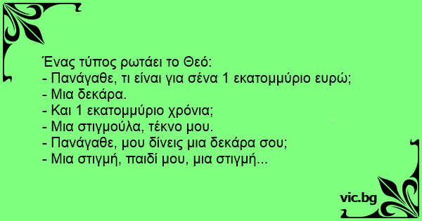 - Πανάγαθε, τι είναι για σένα 1 εκατομμύριο ευρώ;
