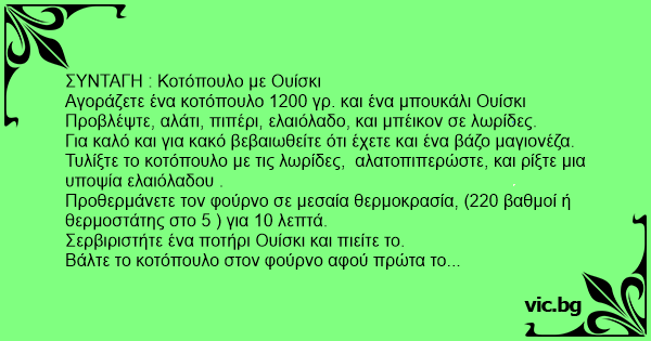 ΣΥΝΤΑΓΗ : Κοτόπουλο με Ουίσκι