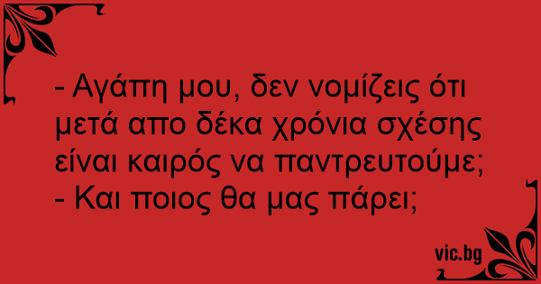 - Αγάπη μου, δεν νομίζεις ότι μετά απο δέκα χρόνια σχέσης είναι καιρός να παντρευτούμε;