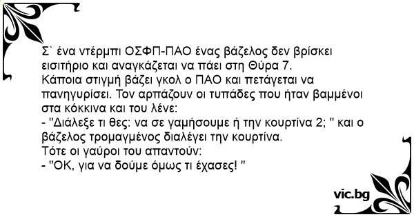 Σ` ένα ντέρμπι ΟΣΦΠ-ΠΑΟ ένας βάζελος δεν βρίσκει εισιτήριο και αναγκάζεται να πάει στη Θύρα 7.
