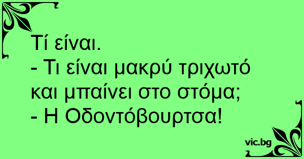 - Τι είναι μακρύ τριχωτό και μπαίνει στο στόμα;