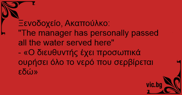 - «Ο διευθυντής έχει προσωπικά ουρήσει όλο το νερό που σερβίρεται εδώ»