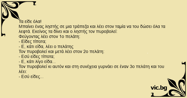 - Ε, κάτι είδα, λέει ο πελάτης